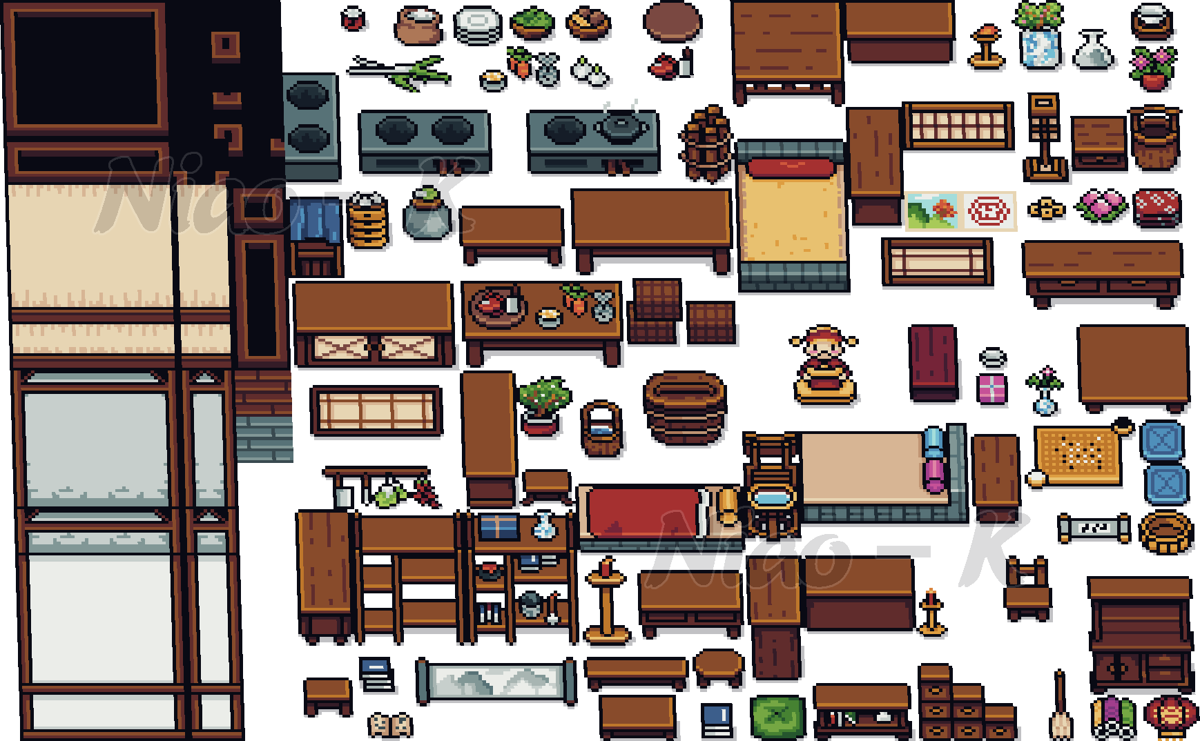 This tileset is suitable for most game engines, such as: RPG Maker, Unity, Godot, etc.